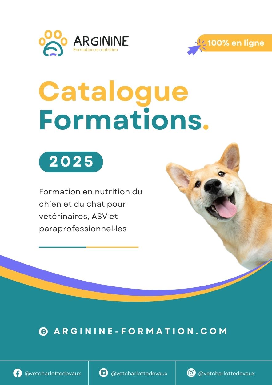 Découvrez le catalogue de formations Arginine, dédié aux professionnel·les souhaitant se spécialiser en nutrition du chien et du chat. Téléchargez-le dès maintenant pour trouver la formation la plus adaptée à votre profil.